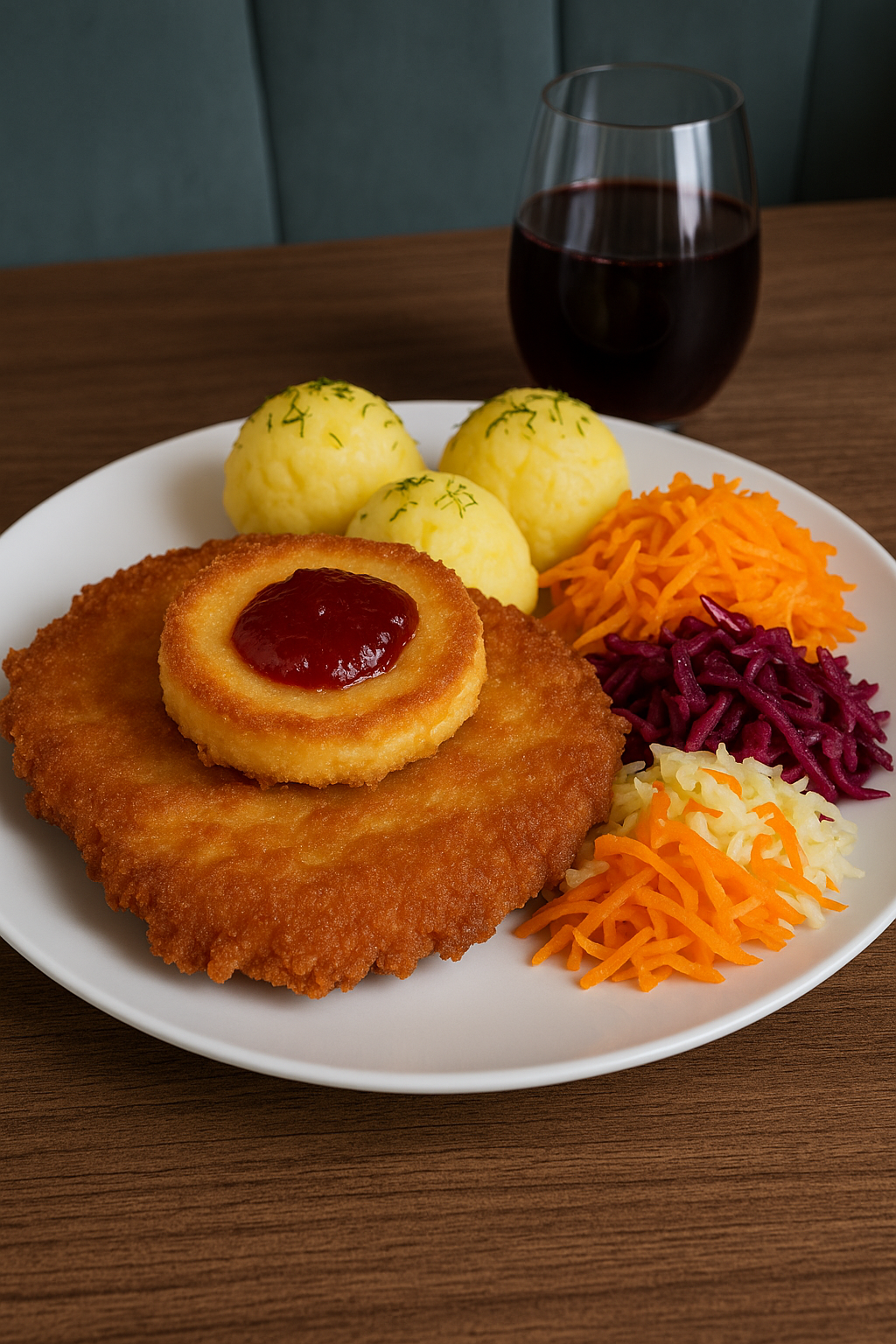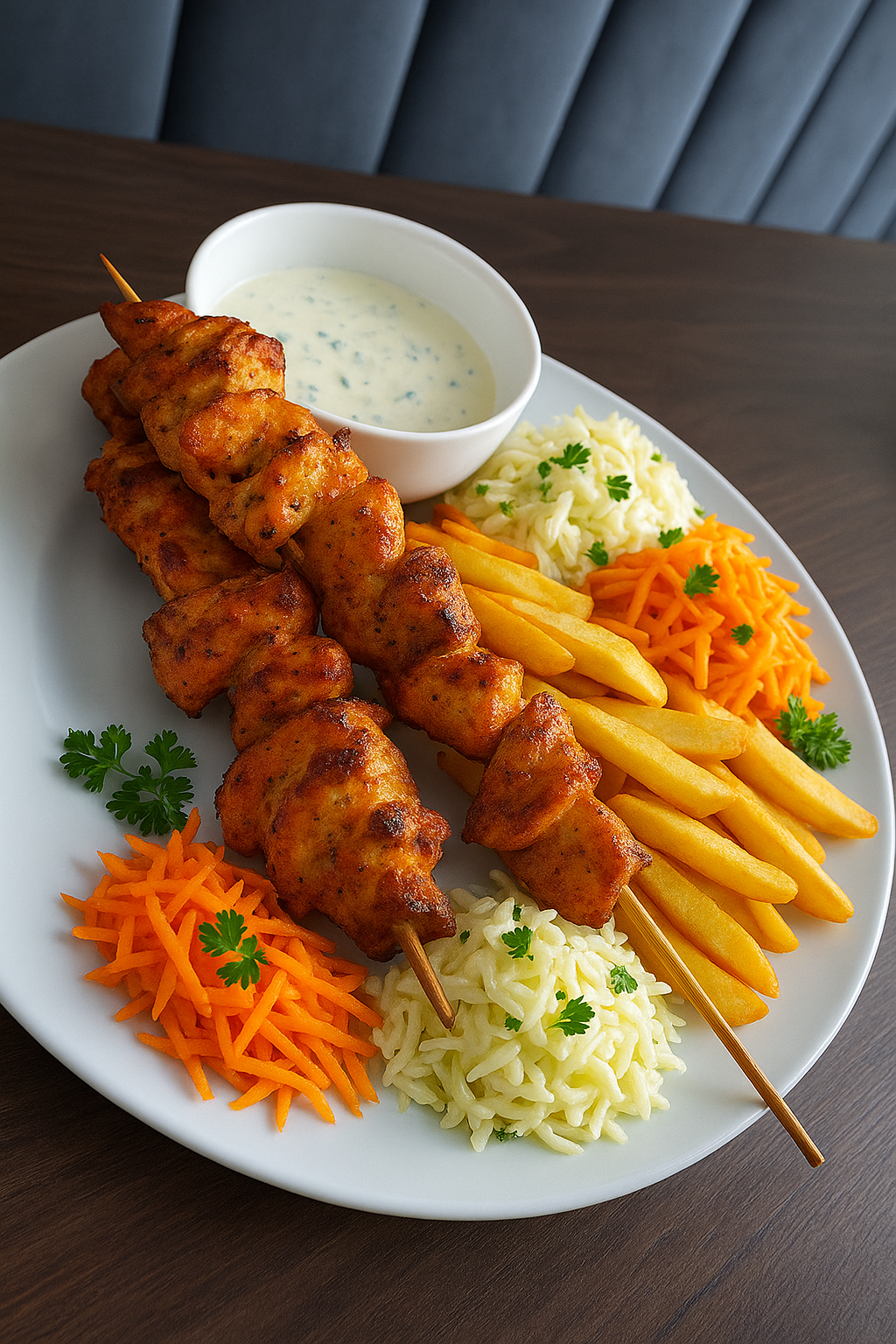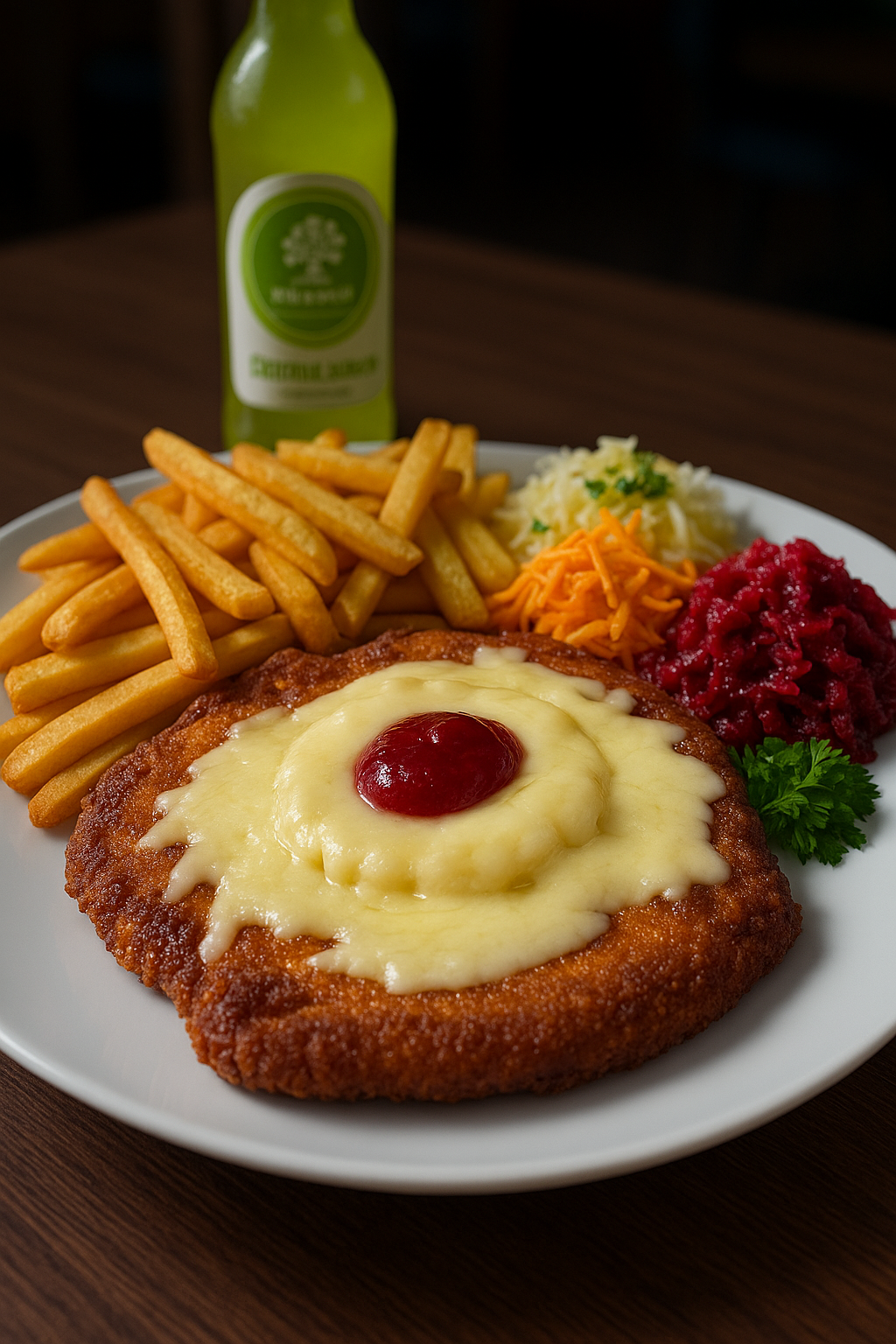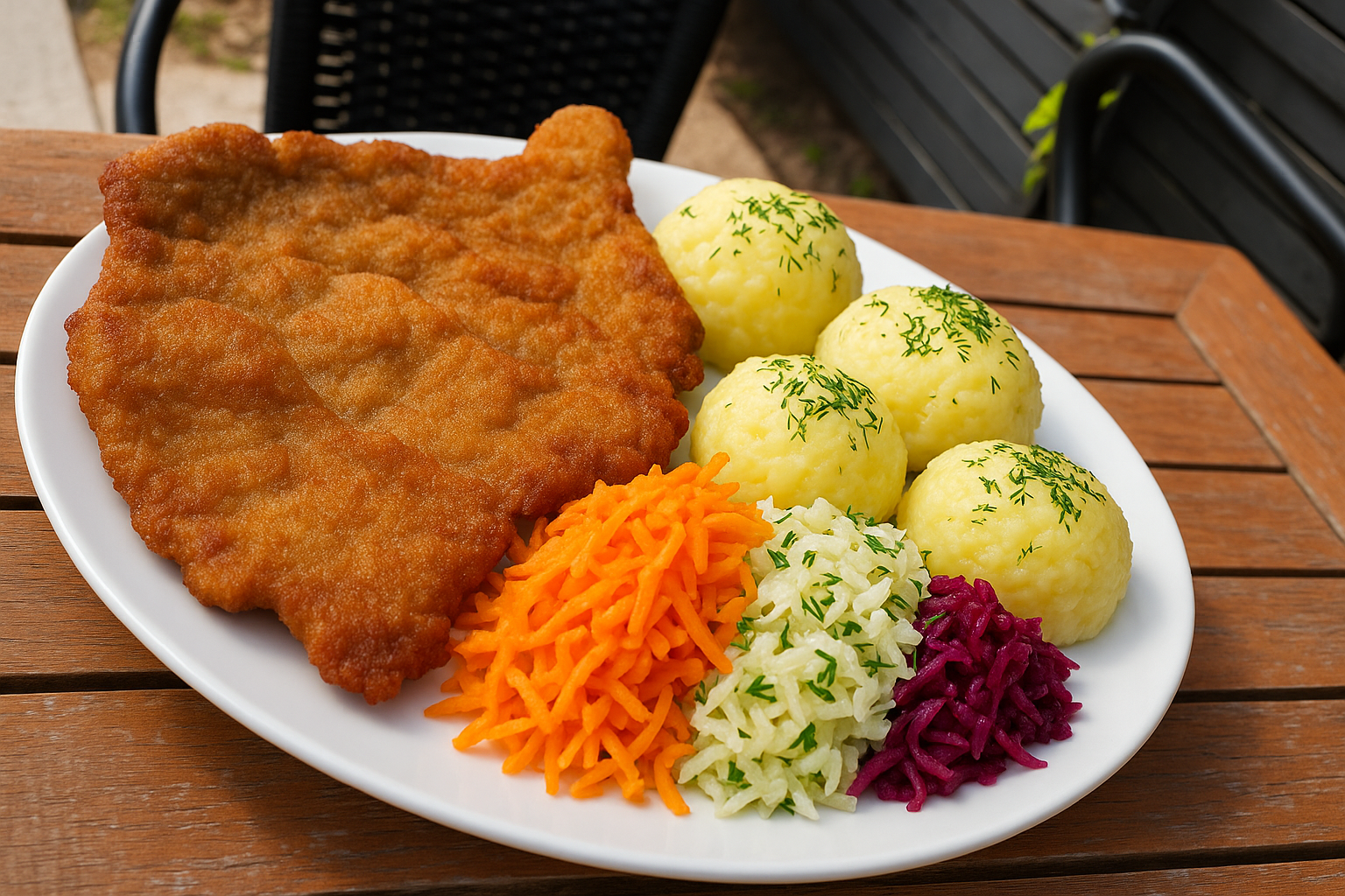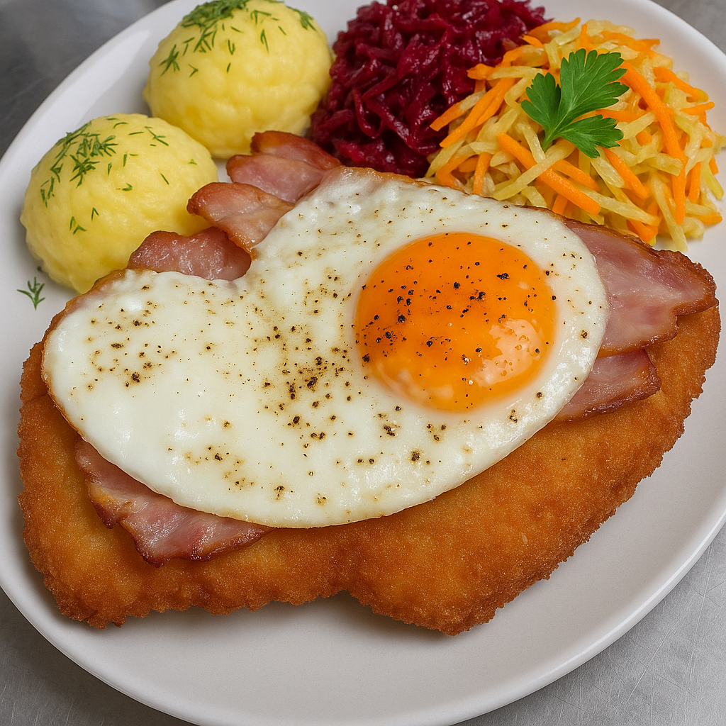 Kajzerka pszenna, sałata, panierowany kurczak, pomidor, świeży ogórek, sos